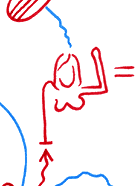 Eingesandt von Harald Falkenhagen: Etwas, was aussieht wie ein Wegbe- schreibungspfeil und aus vier verschie- denen Modulen, ausgedruckt auf klei- ne Zettelchen, zusammengesetzt wor- den ist: Geradeaus, Kurve, Abzweigung (links) und doppelte Abzweigung. (Es ist anzunehmen, dass es noch ein fünftes Modul, die Abzweigung rechts, gibt.) [Fotografiert in der Kunsthochschule Bremen, Pfeil-Kommentar von Hannes Kater] |