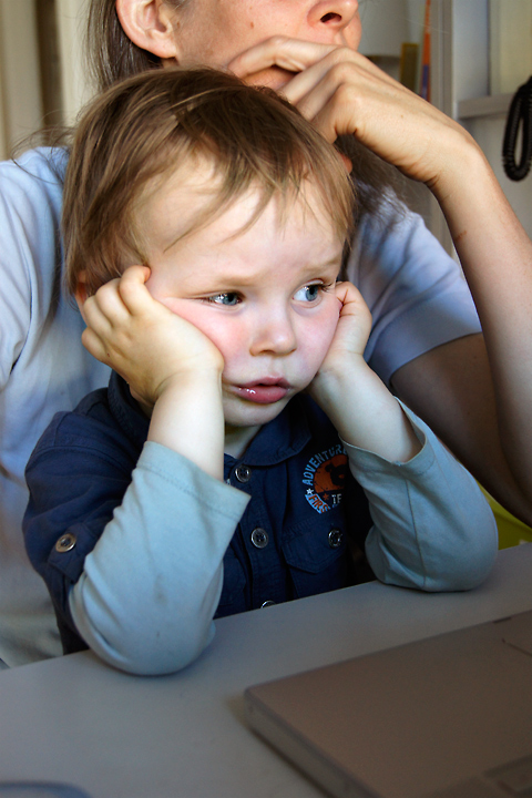H. guckt mit seiner Mutter was im Rechner.